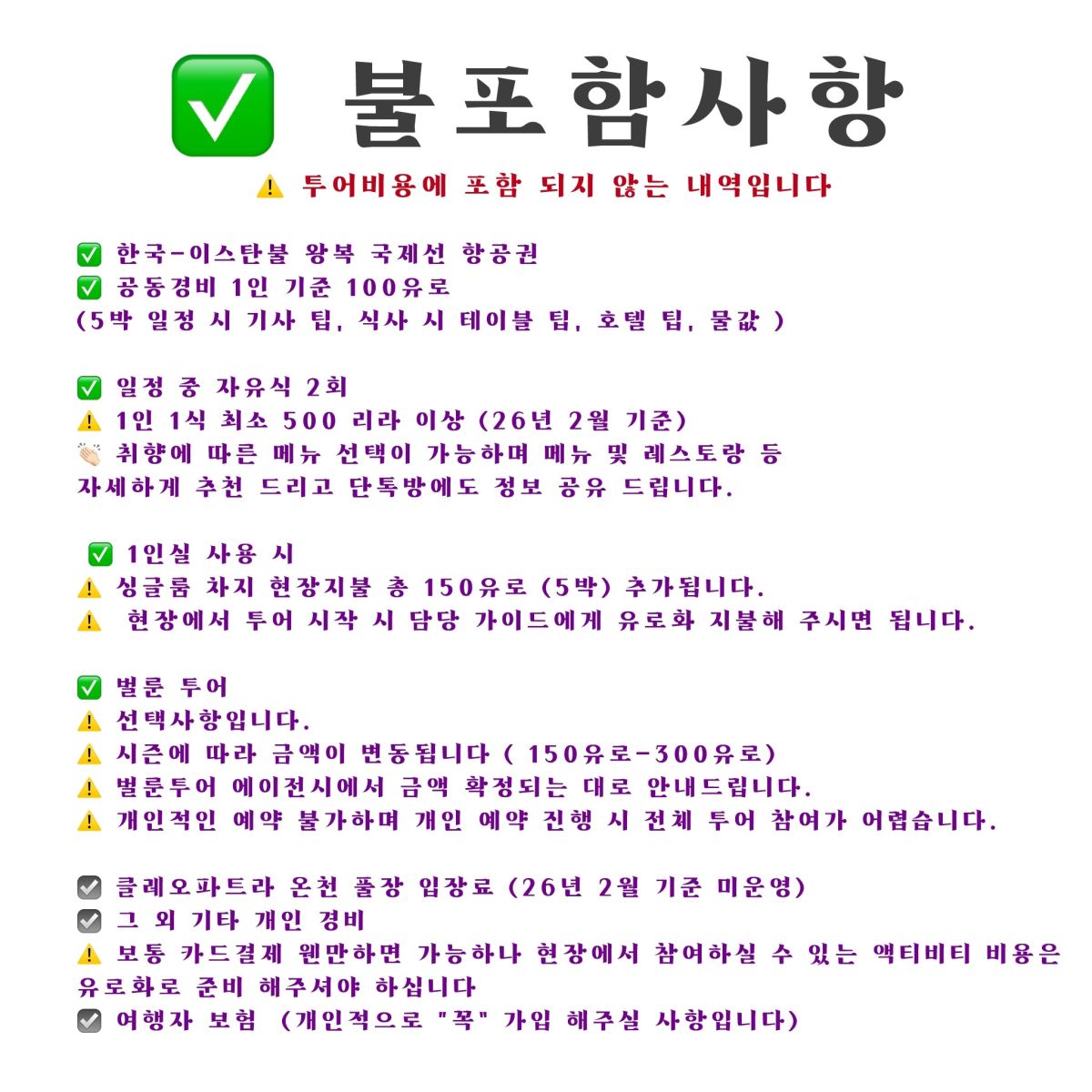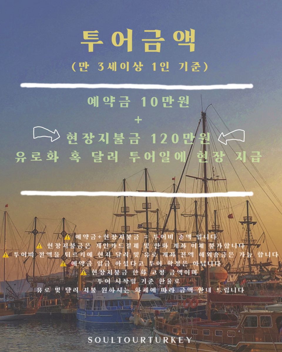 소울투어터키 세미 패키지 튀르키예 5박 6일투어 옵션❌ㅣ쇼핑❌ㅣ최소 8인 모객 시 출발확정ㅣ 매주 일요일 이스탄불 출발- 금요일 이스탄불 도착 투어 입니다